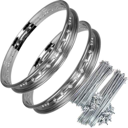 Zestaw - chromowa obręcz koła + komplet szprych 185 mm + 220 mm z nyplami do WFM
