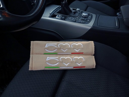 FIAT 500 ЧЕХОЛЫ НА РЕМНИ БЕЗОПАСНОСТИ АЛЬКАНТАРА БЕЖЕВЫЙ БЕЖЕВЫЙ 2 ШТ. С ВЫШИВКОЙ