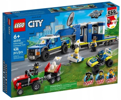 - Zestaw policyjny z serialu telewizyjnego LEGO® City — model LEGO City Mobilne centrum dowodzenia policji (60315) docenią wszyscy młodzi fani serialu telewizyjnego LEGO City Adventures