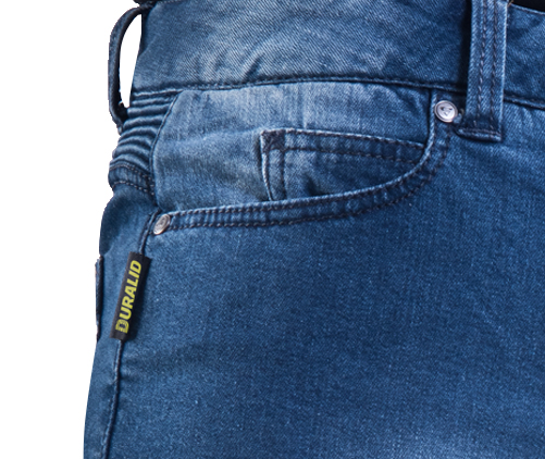 Duralid™, z którego wykonane są jeansy cechuje wysoki poziom bezpieczeństwa przy zachowaniu klasycznego wyglądu. Unikatowy splot włókien aramidowych tworzących materiał posiada wysoką odporność na czynniki mechaniczne i techniczne, zapewniając najlepszą ochronę. Co ważne, materiał pozwala skórze oddychać, więc podróż staje się czystą przyjemnością.