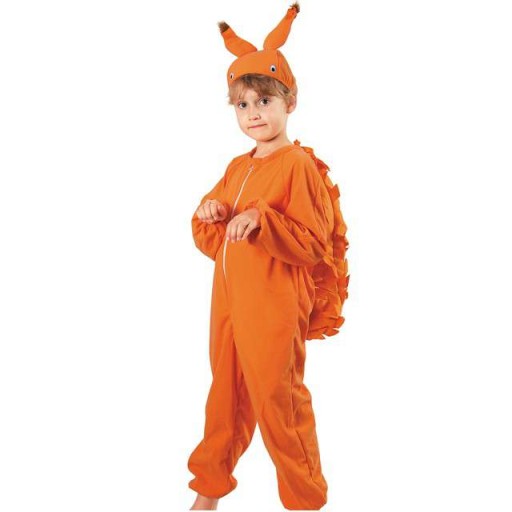 Przepiękny strój rudej WIEWIÓRKI z ogonkiem i uszami to idealny kostium na zabawę karnawałową, szkolne przedstawienie lub teatrzyk. Kombinezon zapinany na suwak umieszczony z przodu. W zestawie czapka z uszami i oczami wiewiórki.