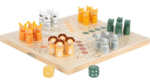 W roli pionków występują na planszy niebanalne figurki zwierzątek: lwa, zebry, lamparta, słonia, krokodyla i żyrafy. Wszystkie ładnie pomalowane i gotowe do gry. Mają około 3,5 cm wysokości oraz średnicę 1,5 cm. Zasady są tu takie same jak przy klasycznym chińczyku, ale do planszy może usiąść aż sześciu graczy.