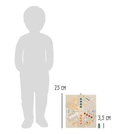 Gra znajduje się w praktycznym, zamykanym, drewnianym pudełku, które można zabrać ze sobą np. w podróż. Rozkładamy pudełko i już mamy wygodną planszę do gry. Chińczyk rozwija logiczne i strategiczne myślenie u dzieci, uczy stosowania się do reguł gry oraz oswaja z liczeniem.