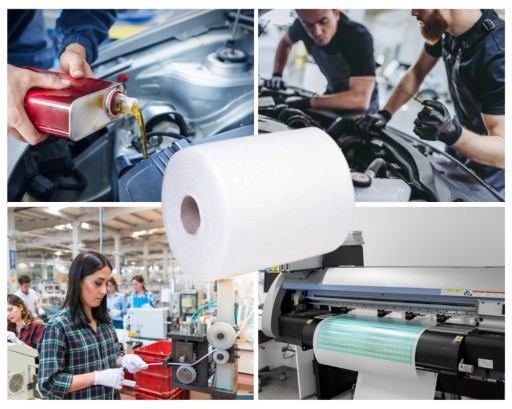 Specjalistyczne, składające się z 45% włókien poliestrowych i 55% pulpy celulozowej; wytrzymałe czyściwo motoryzacyjne sprawdzi się dobrze używane na sucho oraz mokro.