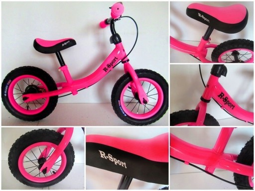 Komfortowa jazda nawet po nierównym terenie - pompowane koła rowerka biegowego redukują wstrząsy, tylny widelec pełni rolę podpórki na stopy.