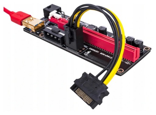 - zasilanie risera: wtyczka SATA --> pci-e 6-pin