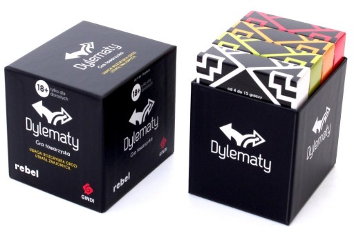 Gra karciana REBEL Dylematy 107055 została zapakowana w wygodne kartonowe opakowanie, które umożliwia bezpieczny transport, jak i przechowywanie zestawu, tak aby żaden element się nie zgubił. W kartonie znajduję się: 30 kart głosów, 6 kart trybów rozgrywki, 1 karta kompasu moralnego, 15 dwustronnych kart punktów, 55 kart lekkich dylematów, 55 kart średnich dylematów oraz 55 kart ciężkich dylematów.