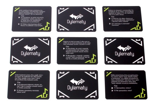 Talia zielona, najlżejsze dylematy - 55 kart niezbyt ciężkich dylematów, którymi zagrasz w dowolnym towarzystwie. Dotykają tematów moralności, uczciwości, a także całkowicie abstrakcyjnych sytuacji, które zamotają w niejednej głowie.