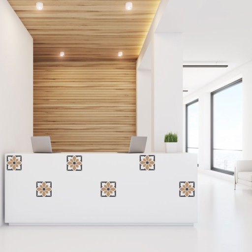 Nakleo Tile Collection to szablony malarskie wielokrotnego użytku wykonane z wytrzymałego tworzywa sztucznego będące imitacją wzorów występujących na płytkach ceramicznych. W kolekcji dostępne są zarówno klasyczne renesansowe wzory, motywy orientalne jak i współczesne kompozycje geometryczne. Prezentowany na tej aukcji wzór ma wymiary 10x10cm. Na innych aukcjach dostępne są również formaty 15x15cm, 20x20cm, 25x25cm, 30x30cm, 33x33cm, 45x45cm oraz 60x60cm. Szablony można używać dowolną ilość razy dzięki czemu z łatwością pokryjesz nawet największe powierzchnie dowolną kompozycją wzorów i kolorów.