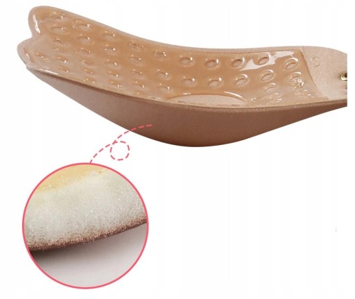 ✔️ Jego wnętrze wypełnione samoprzylepnym, silikonowym żelem, gwarantuje idealne przyleganie miseczek do ciała, nadając biustowi naturalny kształt, a regulowane sznureczki między miseczkami umożliwiają z łatwością zebrać biust, nadając mu pożądany kształt, co jest szczególnie istotne przy trudnych fasonach kreacji