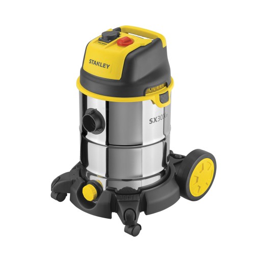 Stanley SXVC30XTDE to wysokiej jakości wielofunkcyjny odkurzacz do częstego sprzątania zabrudzonych powierzchni wewnętrznych i zewnętrznych. W szybkim tempie zbiera zarówno suche, jak i mokre zanieczyszczenia różnej wielkości, które trafiają do zbiornika ze stali nierdzewnej o pojemności 30 l, wyposażonego w korek spustowy i zabezpieczenie przed przepełnieniem. Na korpusie odkurzacza znajdują się: duży przełącznik, uchwyt do ciągnięcia i przenoszenia, cztery koła (w tym dwa duże), schowek na przewód i schowek na końcówki.