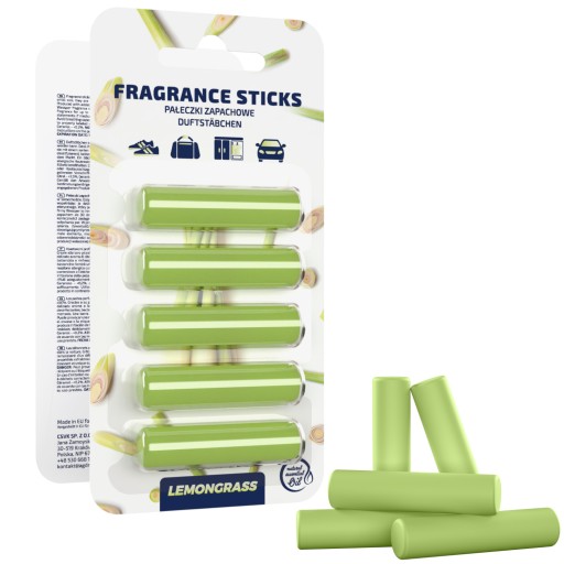 UNIWERSALNE PAŁECZKI O ZAPACHU TRAWY CYTRYNOWEJ DO ODKURZACZA, AUTA, SZAFY, OBUWIA - 5 SZTUK