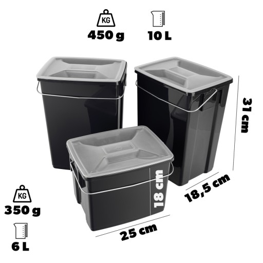 - Wymiary pojemnika 6 L (cm) : 25 x 18 cm