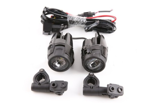 W komplecie bezpiecznik, przewody do akumulatora, wodoodporny włącznik do instalacji na kierownicy oraz uchwyt do gmoli o średnicy od 20.5 do 25 mm.