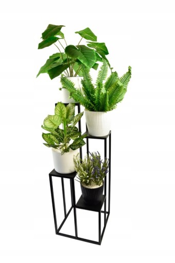 Metalowy kwietnik o nowoczesnym designie z czterema podstawkami.