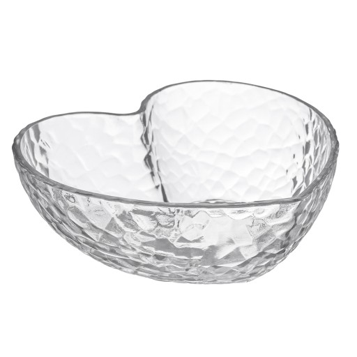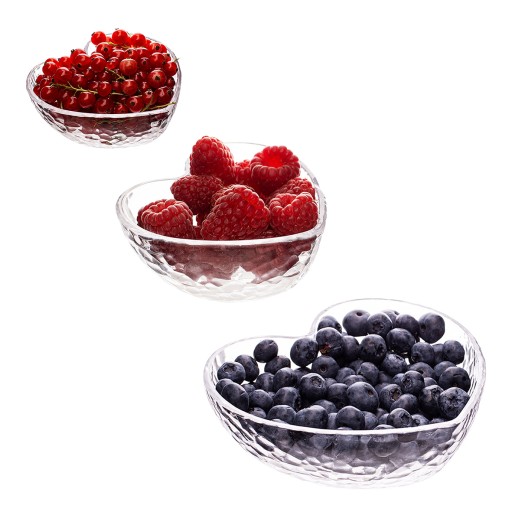 Zestaw 3 szklanych salaterek w kształcie serca.