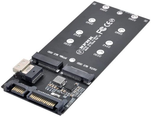 - Adapter umożliwia podłączenie dysku SSD M.2 PCI-e NVMe key M oraz M.2 SATA Key B lub Key B+M