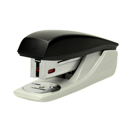 Niezawodny, mały zszywacz do codziennego użytku. Zapakowany w pudełko kartonowe, z szywkami w komplecie.