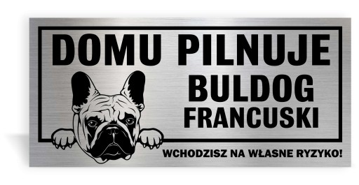 TABLICZKA "DOMU PILNUJE" 30 x 14 cm. WYKONANA Z DIBONDU SZCZOTKOWANEGO, ZADRUKOWANA METODĄ UV. BARDZO TRWAŁA I ELEGANCKA. DLA UŁATWIENIA WYSZUKIWANIA WSZYSTKIE PLIKI Z RASAMI PSÓW SĄ UŁOŻONE ALFABETYCZNIE.