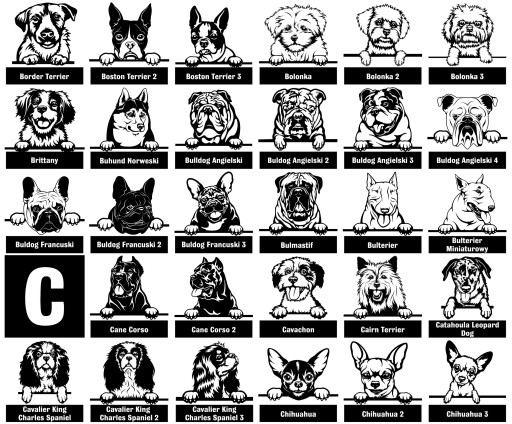 - Do wyboru 350 plików graficznych ze wszystkimi rasami psów