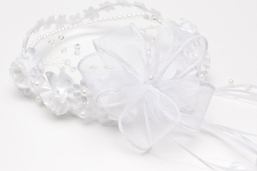 Komunijny wianek z białymi kwiatuszkami i kokardką