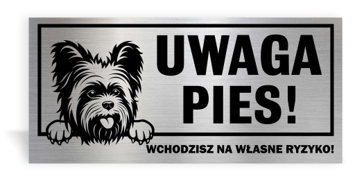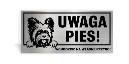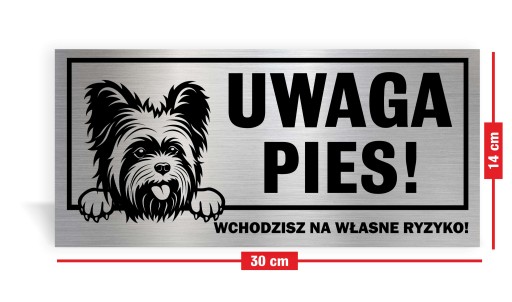 TABLICZKA "UWAGA PIES" 30 x 14 cm. WYKONANA Z DIBONDU SZCZOTKOWANEGO, ZADRUKOWANA METODĄ UV. BARDZO TRWAŁA I ELEGANCKA. DLA UŁATWIENIA WYSZUKIWANIA WSZYSTKIE PLIKI Z RASAMI PSÓW SĄ UŁOŻONE ALFABETYCZNIE.