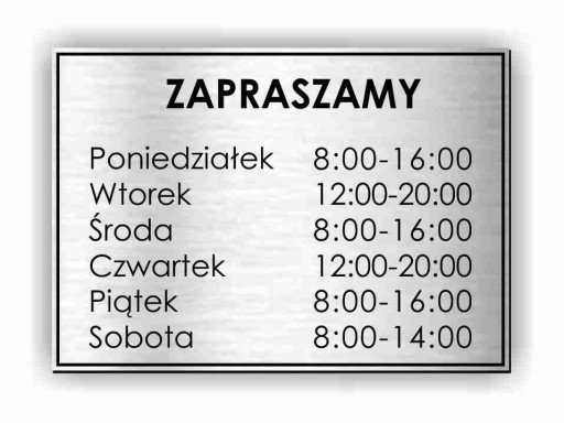 tabliczka samoprzylepna GODZINY OTWARCIA Nazwa firmy logo A5 filtr UV
