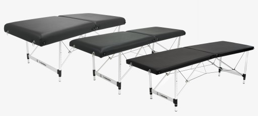 Wysokość można dostosować do wzrostu i indywidualnych potrzeb osoby wykonującej zabieg za pomocą regulacji z mechanizmem blokującym. Każda z aluminiowych nóg stolika składa się z dwóch rurek, które po odblokowaniu można swobodnie przesuwać względem siebie. Mechanizm Fast Lock utrzymuje elementy w wybranej pozycji po umieszczeniu blokady w odpowiednim otworze.