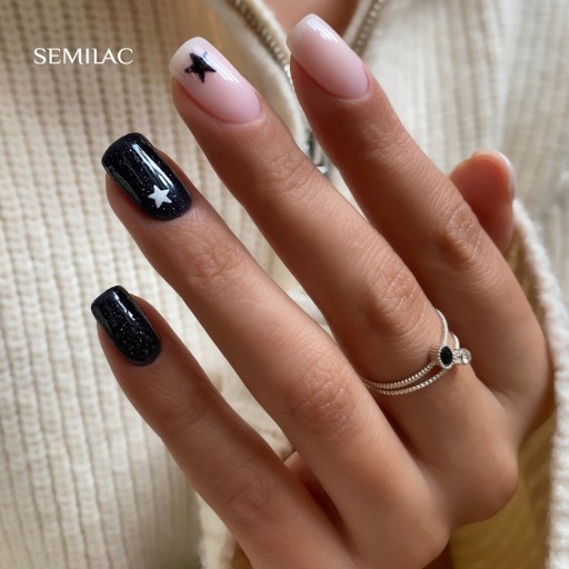 ⭐SEMILAC 394 Sparkling Midnight Date Lakier hybrydowy 7ml Czarny Efekt Flash⭐