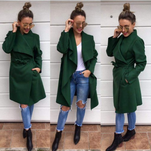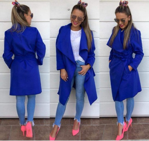 Lekki płaszczyk damski, świetnie sprawdzi się również jako narzutka. Bardzo miły w dotyku, wykonany z delikatnego materiału. Uniwersalny fason, świetny dla każdej sylwetki i stylizacji. Talię podkreśla pasek, wykładany kołnierz można układać na kilka sposobów. Produkt europejski, bardzo dobra jakość materiału.
