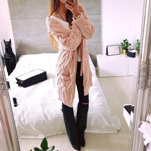 Świetnie wygląda w zestawieniu z jeansami lub legginsami, może zastąpić marynarkę.