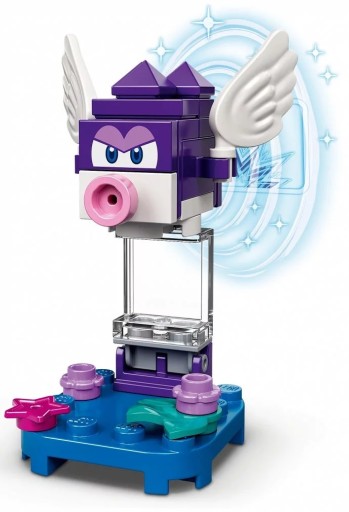 - W zbiorze jest 10 wyjątkowych postaci LEGO® Super Mario™ do kolekcjonowania i zabawy: Huckit Crab, Spiny Cheep Cheep, Ninji, Foo, Parachute Goomba, Para-Beetle, Poison Mushroom, Thwimp, Fly Guy i Bone Goomba.