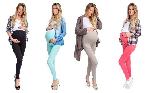 Legginsy ciążowe z progresywnym systemem dopasowania panelu ciążowego rosnącego razem z brzuszkiem .