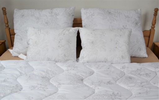 Poszycie kołder wykonano z przyjemnej w dotyku mikrofibry. Puszyste wypełnienie to recyklowane włókna HCS, które wzbogacone silikonem utrzymują odpowiednią sprężystość, kołdry nie zbijają się podczas użytkowania.