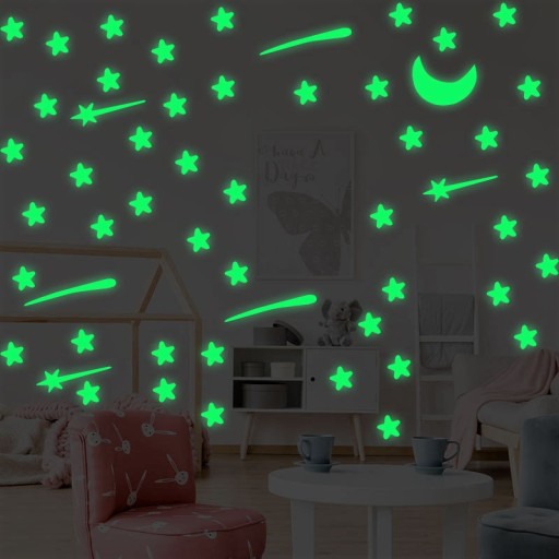 NAKLEJKI SAMOPRZYLEPNE KSIĘŻYC Z GWIAZDKAMI - ZESTAW FLUORESCENCYJNY