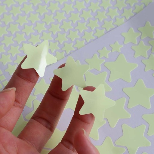 Naklejki absorbują światło i świecą w ciemności na kolor zielony. Zaleca się naklejenie w miejscu które jest dobrze naświetlone za dnia.