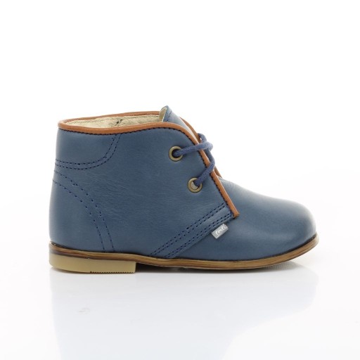Trzewiki w kolorze granatowym - idealne do nauki chodzenia, wyprodukowane z najwyższej jakości skóry naturalne. Buciki odpowiednio stabilne i elastyczne, wnętrze wyścielone mięciutka skórą, co chroni przed otarciem. Wkładka skórzana profilowana - odpowiednio kształtuje rozwój stopy. Zapięcie regulowane sznurówką. Posiadają szeroki czubek, co daje swobodę paluszkom. Podeszwa elastyczna oraz antypoślizgowa. Obcas Thomasa. Model nadaje się na szczupłe stópki.