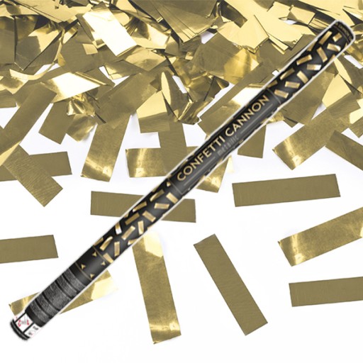 Tuby strzelające metalicznym konfetti w kolorze złotym.