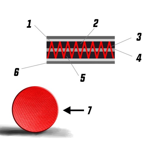Nasze worki wypełniamy kilkoma warstwami różnych materiałów m.in. ścinek bawełnianych (1), filcu (2) oraz mikro-gumy(3).