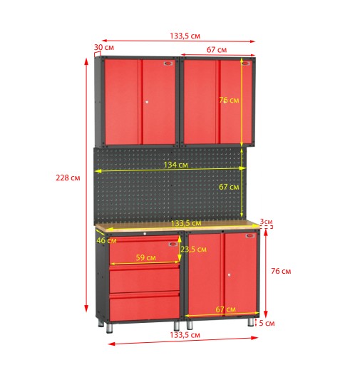 ZESTAW MEBLI WARSZTATOWYCH 7 EL.(czerwony- czarny),460X2180X1330 mm.