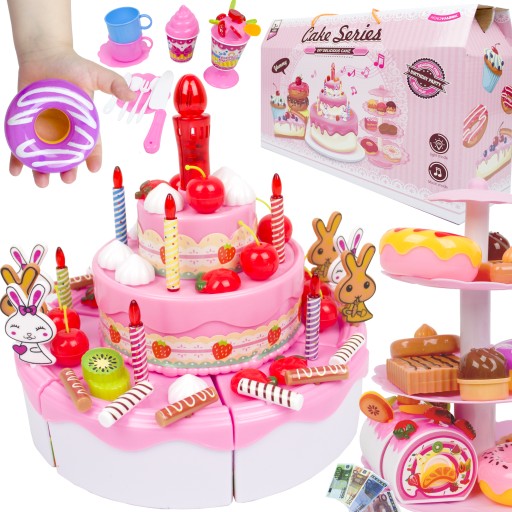 TORT URODZINOWY / ZABAWKA DLA DZIECI / KROJENIA / NA RZEPY / 125 ELEMENTÓW / KOLOR RÓŻOWY