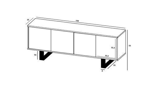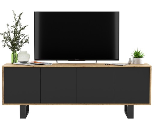 Cztero-drzwiowa szafka RTV w stylu Loft podzielona na dwie dwupoziomowe komory zamykane. Wygodny system "push to open" do otwierania drzwiczek. Brak widocznych uchwytów dodaje szafce elegancji. Szafka ta pięknie się prezentuje w nowoczesnych pomieszczeniach jak również w pomieszczeniach w stylu Loft.