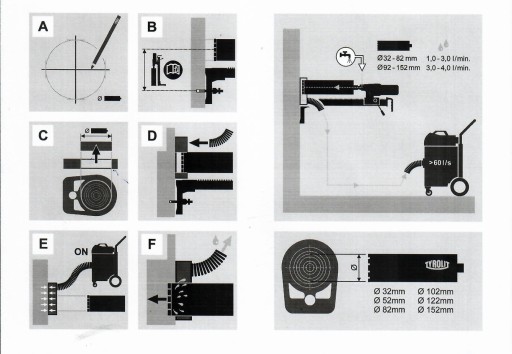- Wstępnie przycięte średnice główne: 32 / 52 / 82 / 102 / 122 i 152 mm