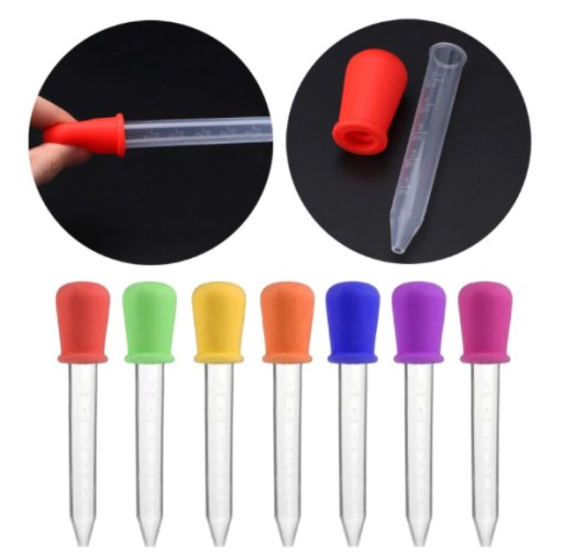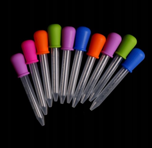 Plastikowa pipeta z gumową pompką i podziałką.