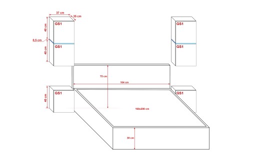 Zestaw D2 skonstruowaliśmy tak aby pasował do różnych wymiarów łóżek. W tej opcji szafki łączą się ze sobą nad łóżkiem dzięki czemu komplet będzie pasował do najpopularniejszych powierzchni spania.