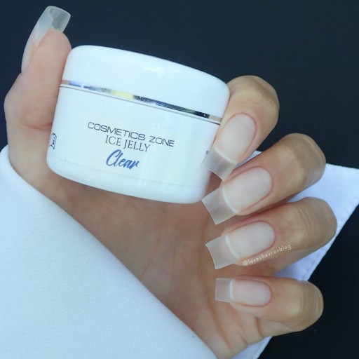 Ice Jelly Clear to przeźroczysty, gęsty żel o konsystencji galaretki. Charakteryzuje się dużą stabilnością i łatwością w aplikacji dzięki swojej miękkiej i aksamitnej konsystencji. Doskonale łączy się z płytką paznokcia, tworząc twardą i wytrzymałą powierzchnię. Żel wykazuje delikatne właściwości samopoziomujące, doskonale sprawdza się do budowy paznokcia na formie lub tipsie.