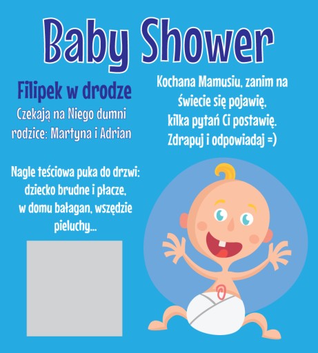 Wyjątkowa zabawa na Baby Shower - ZDRAPKI Z PYTANIAMI I ZADANIAMI! - 12 sztuk