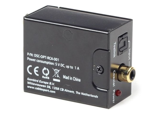Umożliwia używanie cyfrowych urządzeń audio z analogowymi odbiornikami audio lub wzmacniaczami. Przekształca cyfrowy sygnał audio Coaxial lub Toslink w analogowy dźwięk stereofoniczny (L / R). Standardowe złącza wyjścia audio RCA (cinch). Transmisja bez zakłóceń elektromagnetycznych. Dołączony zasilacz 5 V DC.