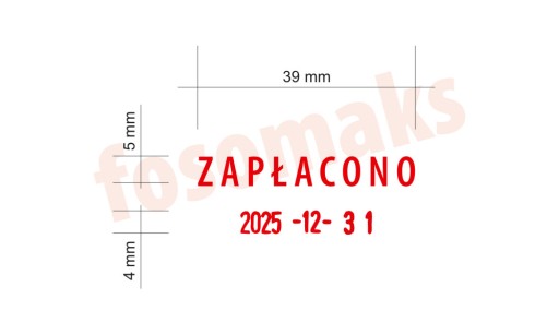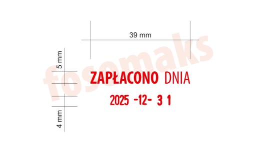 Datownik Trodat 4750 w plastikowej obudowie z dowolną treścią, maksymalnie 2 linijki tekstu, jedna nad, druga pod datą. Po zakupie proszę przesłać tekst, z podziałem na górna linijka, dolna linijka, z rozróżnieniem wielkości liter - wykonamy dokładnie tak, jak otrzymamy. Proszę pamiętać o ograniczonej liczbie znaków w linijce, około 18.