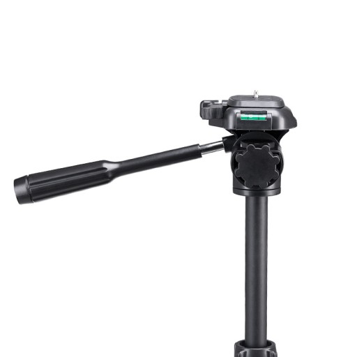 Statyw wyposażony jest w głowicę 3D umożliwiającą niezależną regulację każdej z trzech płaszczyzn roboczych: